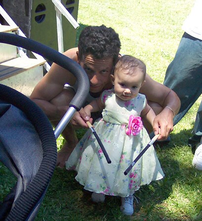 Little Miss Lazo, learning the ropes from her Grandpa